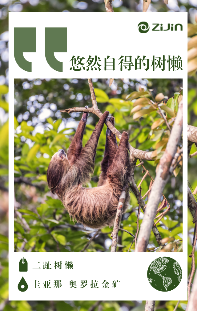在奧羅拉金礦營地及礦區(qū)周邊樹林及沼澤地,經(jīng)常會出現(xiàn)樹懶的身影,這種高度樹棲的動物,常年生活在樹上,行動也極遲緩。