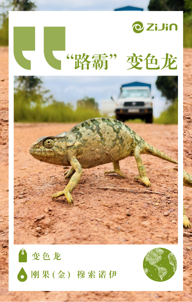 穆索諾伊礦區(qū)內(nèi)通往選礦廠的路上,一只變色龍大搖大擺地擋住了車子的去路。變色龍的行動十分遲緩,善于隨環(huán)境的變化,隨時改變自己身體的顏色。