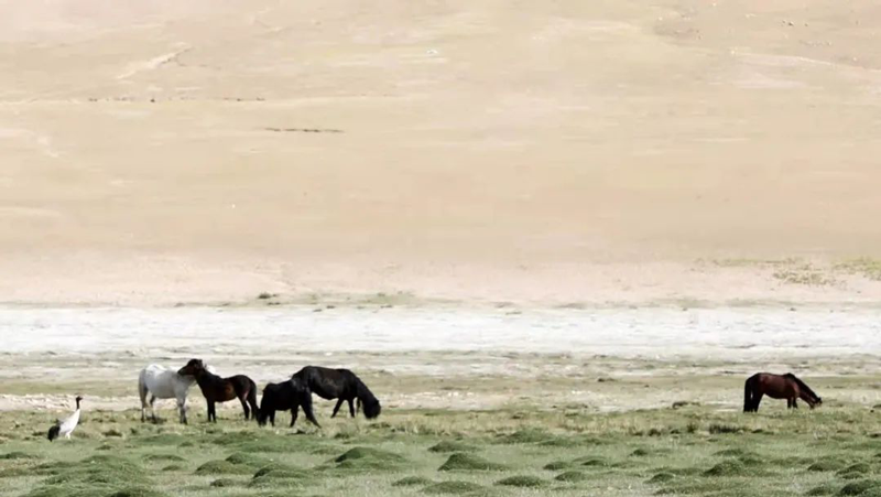 在這個全世界仰望的海拔高地,我看到獨一無二的風景,就像走進另一個星球。珍貴的藏羚羊從開始的一兩只到廉價占領一片小山坡,野馬野驢自由馳騁、鬃毛飄揚,黑頂鶴在沼澤地閑庭信步,白云的光影在廣袤的大地上隨意作畫,像藍寶石鑲嵌的湖水隔三差五出現,星羅棋布、侯門似海。