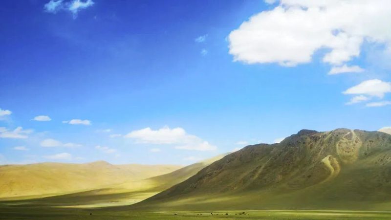 第一次啟程阿里之行,是今年6月初。我被沿途的風景深深吸引。車子在遼闊寂寞的無人區前進。山巒時矮時長,天地是如此寬敞,大地平坦的像一副棋盤,道路鋪在大地上,像一條微不足道的絲帶,在看不到盡頭的遠方不斷延伸,遠方是否天涯海角尚不可知,我卻看到白云在地平線上慢慢升起。這讓人產生一種錯覺,車子似乎在云端飛馳。