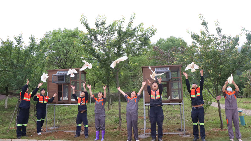 紫金山銅金礦采礦廠員工在礦山植物園搭建飼養籠,放飛數十只鴿子,倡導人們踐行保護生物多樣性理念。