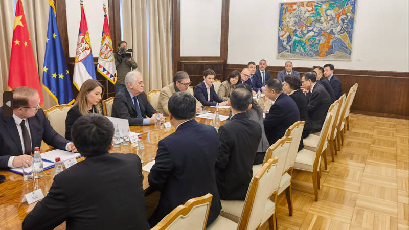 武契奇總統與中國駐塞大使陳波女士和陳景河董事長一行舉行會晤