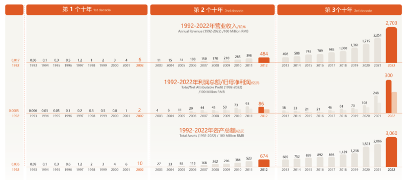 在紫金礦業30周年慶祝大會上,陳景河董事長把紫金三十年劃分為三個十年。從發展指數看,紫金跨越發展的第三個十年,正是“一帶一路”倡議提出以來的十年,數據顯示,十年來,紫金礦業營收增長了5倍多,利潤總額增長了近8倍,市值增長了3倍多,資產規模、營收、市值連續突破千億、兩千億、三千億大關,經濟效益連續多年保持行業領先。