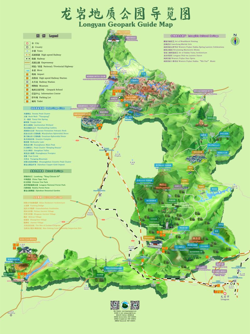 龍巖世界地質公園范圍2175平方公里,具有豐富多樣的地質遺跡資源,以紫金山超大銅金礦、梅花山大型復式花崗巖體、冠豸山丹霞地貌、黃連盂石英砂巖地貌為主要特色,是一個集豐富地質景觀、優良生態環境、深厚文化底蘊于一體的中大型綜合性地質公園。